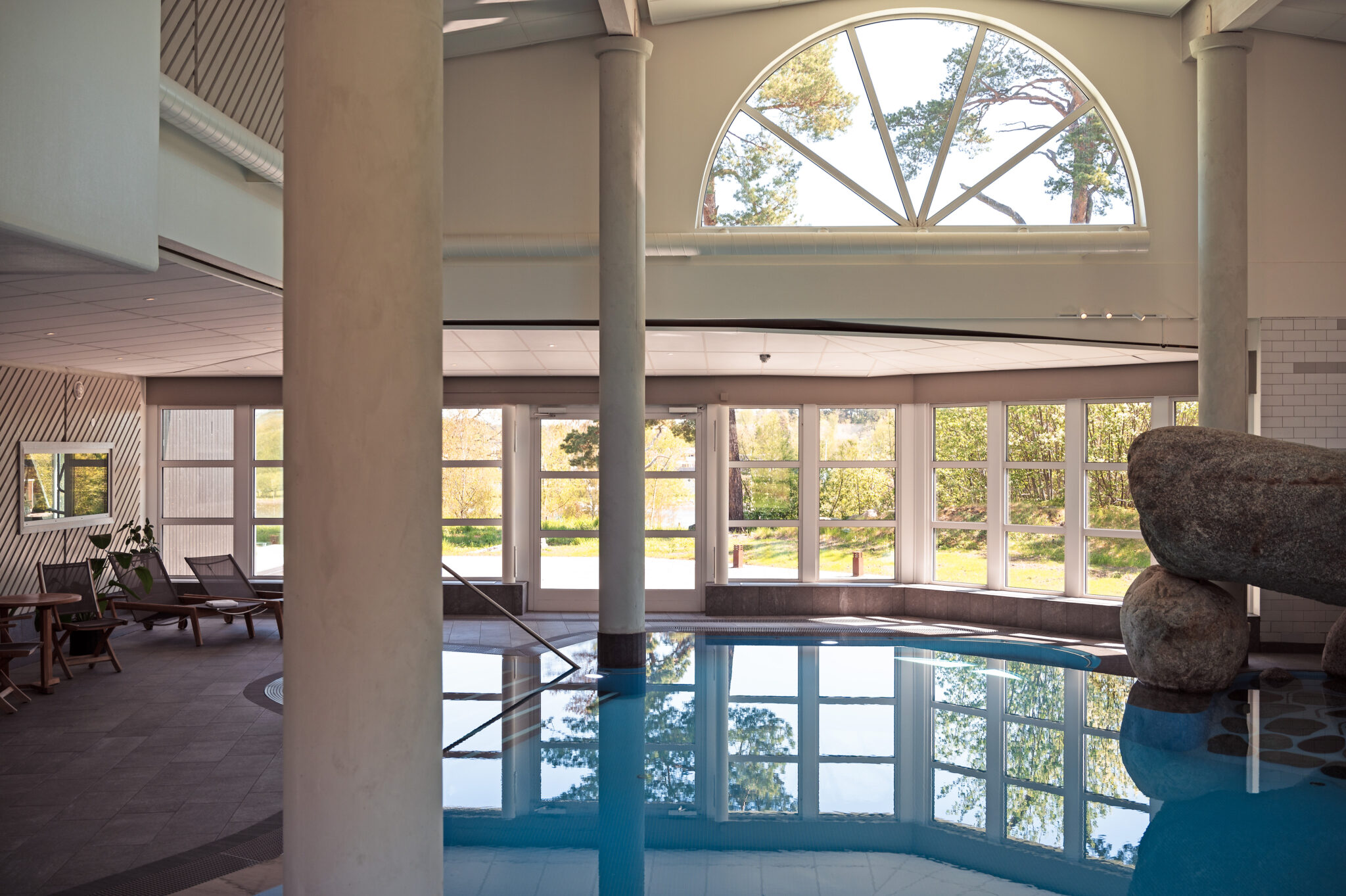 Poolen är omkring 1,5 m djup, har en bubbelsektion och jetstream som passar såväl lek som träning.