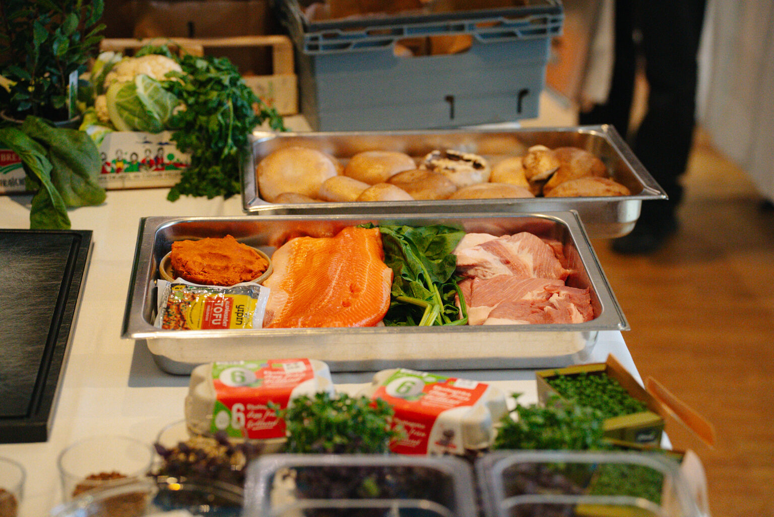 Mikael lagade en halstrad regnbåge med krisp på pluma, sojastekt spetskål, sallad på grön sparris, chili och färska örter.